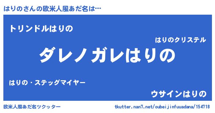 | 意味不明あだ名 | 『住所不定無職はりの(77歳)』 |