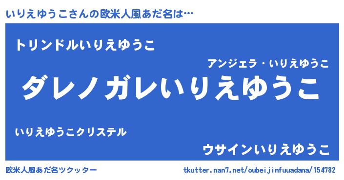 | 男性向けラノベタイトル風あだ名 | 『魔弾の王といりえゆうこ』 |