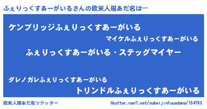 | 男性向けラノベタイトル風あだ名 | 『冴えないふぇりっくすあーがいるの育てかた』 |