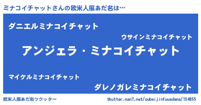 | 男性向けラノベタイトル風あだ名 | 『ミナコイチャットに滅ぼされるだけの簡単なお仕事です』 |