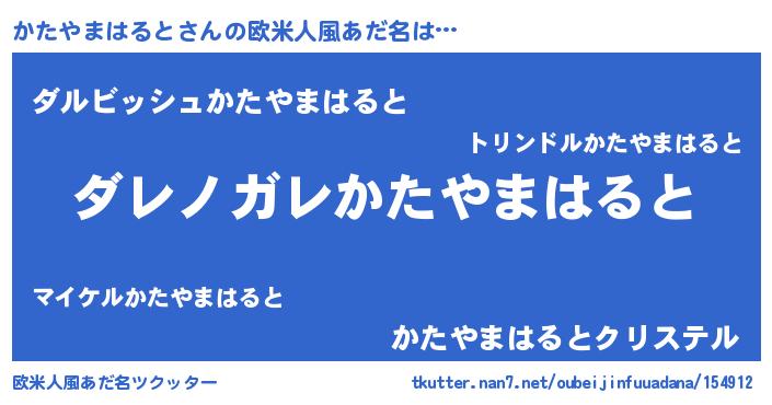 | 男性向けラノベタイトル風あだ名 | 『この素晴らしい世界にかたやまはるとを!』 |