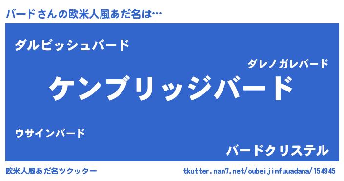 | 男性向けラノベタイトル風あだ名 | 『Re:バードから始める異世界生活』 |