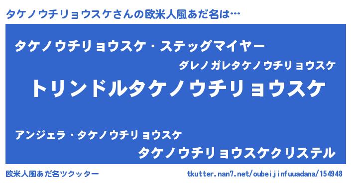 | 女子向けラノベタイトル風あだ名 | 『タケノウチリョウスケの玉の輿計画!』 |