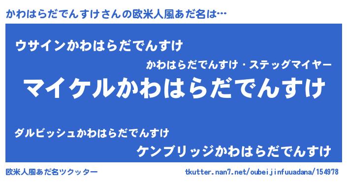 | 男性向けラノベタイトル風あだ名 | 『かわはらだでんすけの憂鬱』 |