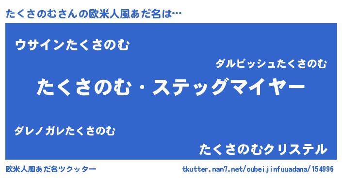 | 男性向けラノベタイトル風あだ名 | 『うちのたくさのむが世界を掌握している!』 |