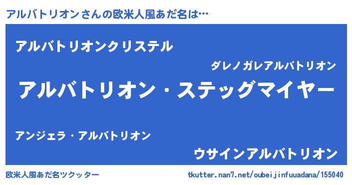 | 意味不明あだ名 | 『アルバトリオンフォーエバー』 |