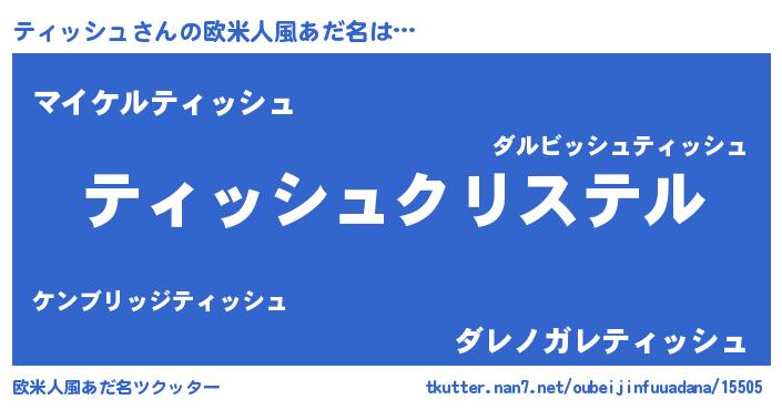 | 意味不明あだ名 | 『ティッシュフォーエバー』 |