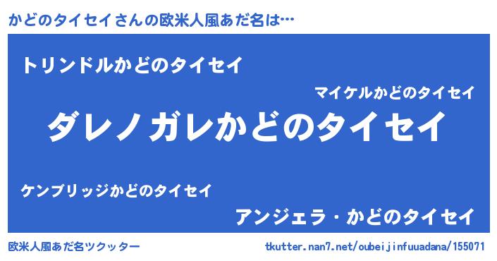 | 意味不明あだ名 | 『住所不定無職かどのタイセイ(56歳)』 |