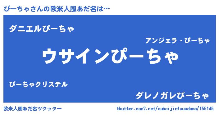 | 男性向けラノベタイトル風あだ名 | 『ぴーちゃの嫁は女の子じゃないと思った?』 |