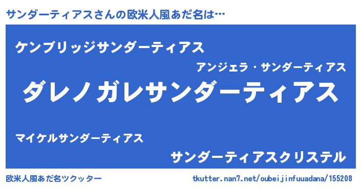 | 胡散臭い通販商品みたいなあだ名 | 『あなたにだけ特別に提供する100年もののヴィンテージワイン…その名も「サンダーティアス」』 |