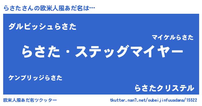 | 男性向けラノベタイトル風あだ名 | 『緋弾のラサタ』 |