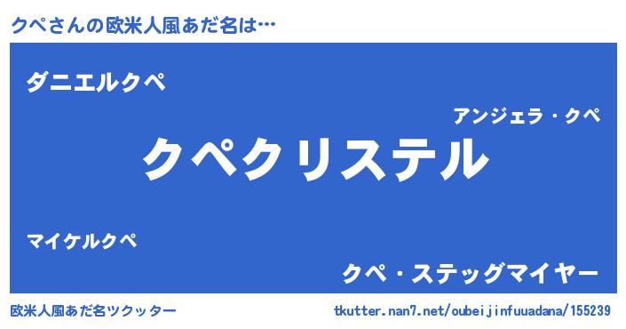| 女子向けラノベタイトル風あだ名 | 『クペの婚約者』『クペ恋絵巻』 |
