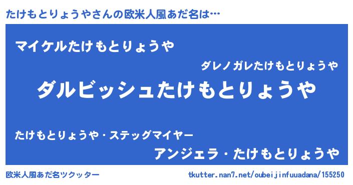 | ヘコむあだ名 | 『たけもとりょうや(笑)』『たけにゅー』 |
