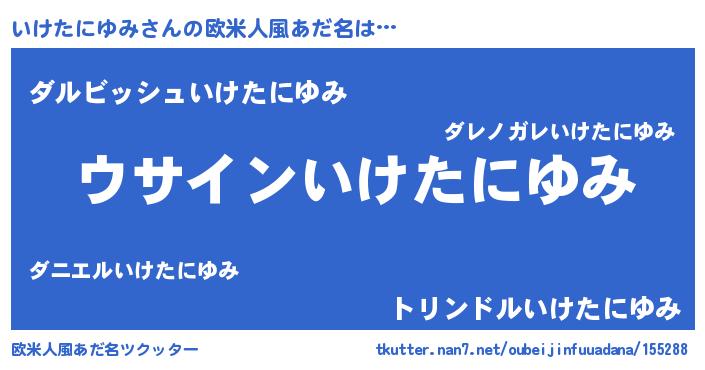 | 男性向けラノベタイトル風あだ名 | 『いけたにゆみの嫁は女の子じゃないと思った?』 |
