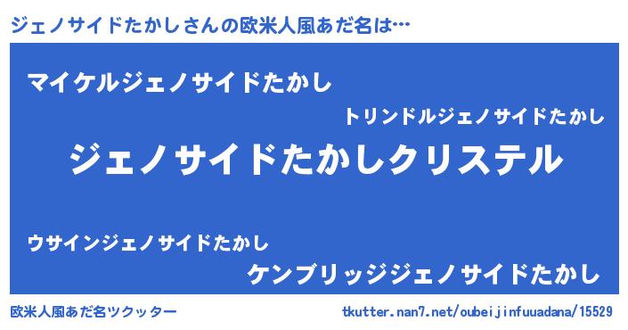 | 女子向けラノベタイトル風あだ名 | 『ジェノサイドたかしの雑貨屋さん』 |