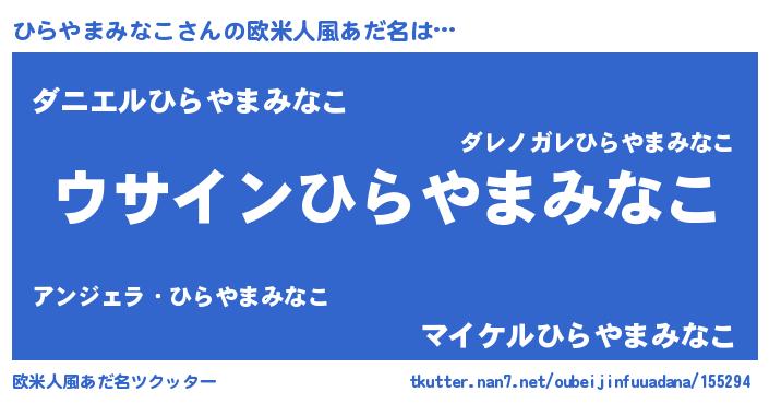女子向けラノベタイトル風あだ名 | 『ひらやまみなこは平凡を望む』 |