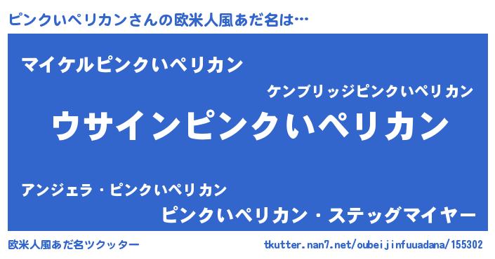 | 女子向けラノベタイトル風あだ名 | 『ピンクいペリカンは平凡を望む』 |