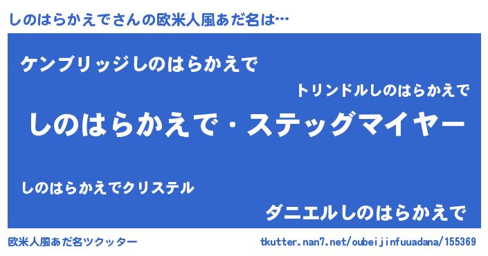 | 意味不明あだ名 | 『自称しのはらかえで』 |