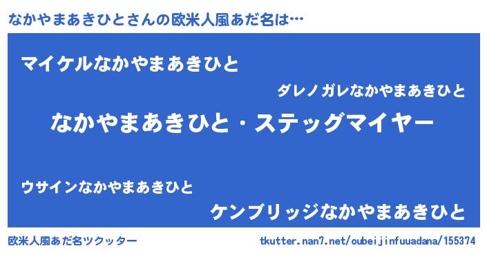 | 男性向けラノベタイトル風あだ名 | 『うちのなかやまあきひとが世界を掌握している!』 |