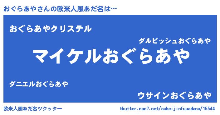 | 男性向けラノベタイトル風あだ名 | 『オグラアヤアートオンライン』 |