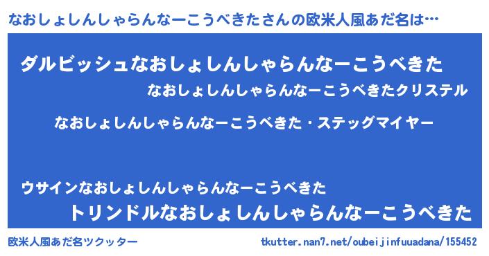 | ヘコむあだ名 | 『なおしょしんしゃらんなーこうべきた(笑)』 |