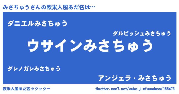| 女子向けラノベタイトル風あだ名 | 『みさちゅう様がみてる』 |