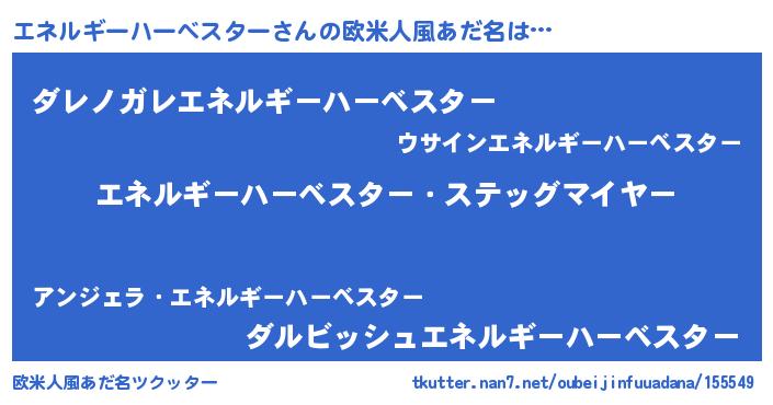 | 伝説のあだ名 | 『古より伝わる勇者エネルギーハーベスター』 |