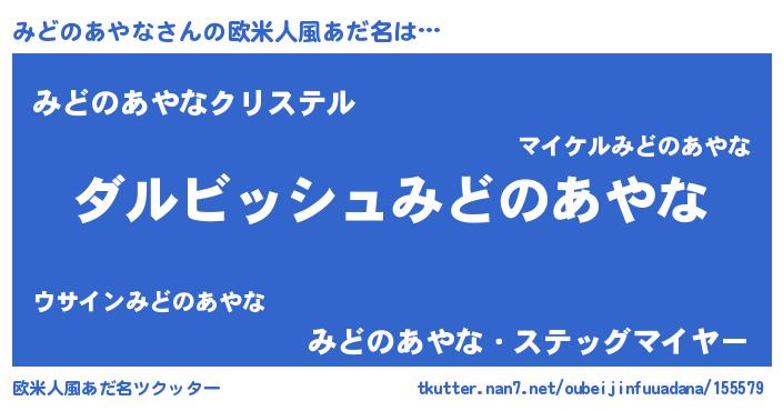 | 男性向けラノベタイトル風あだ名 | 『誰もが恐れるあのみどのあやなが、ぼくの専属メイドになるようです。』 |