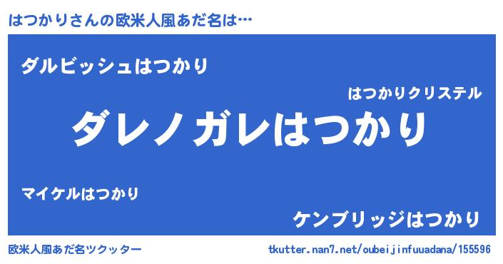 | 意味不明あだ名 | 『住所不定無職はつかり(41歳)』 |