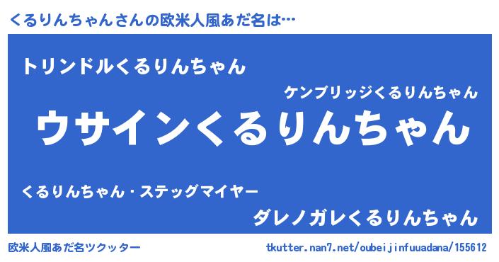 | 男性向けラノベタイトル風あだ名 | 『ダンジョンにくるりんちゃんを求めるのは間違っているだろうか』 |