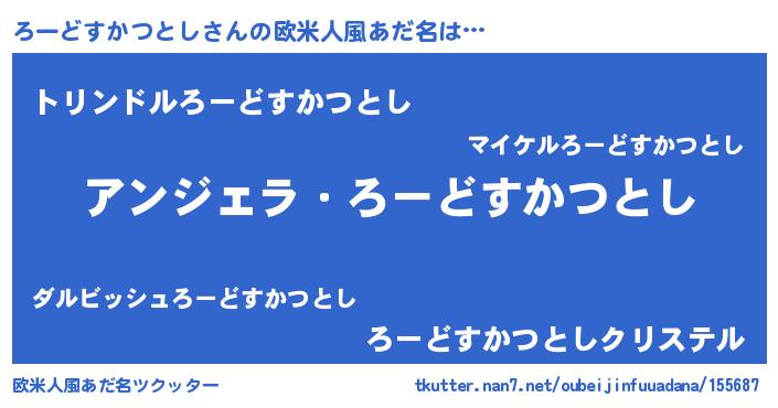 | 男性向けラノベタイトル風あだ名 | 『ろーどすかつとしに滅ぼされるだけの簡単なお仕事です』 |