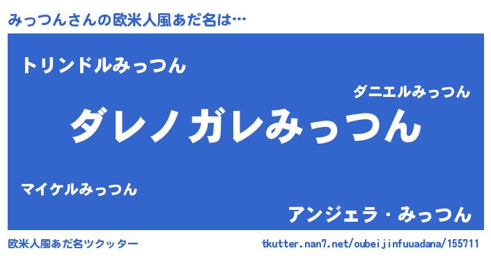 | 男性向けラノベタイトル風あだ名 | 『魔弾の王とみっつん』『みっつんの憂鬱』 |