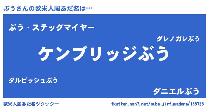 | ヘコむあだ名 | 『ぶう(笑)』『ぶうお』『ぶうにー』 |