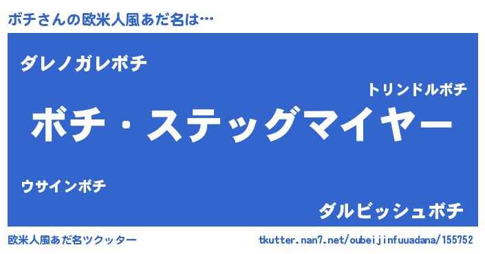 | ヘコむあだ名 | 『ボチ(笑)』『ボチ太郎』『ボチにー』 |