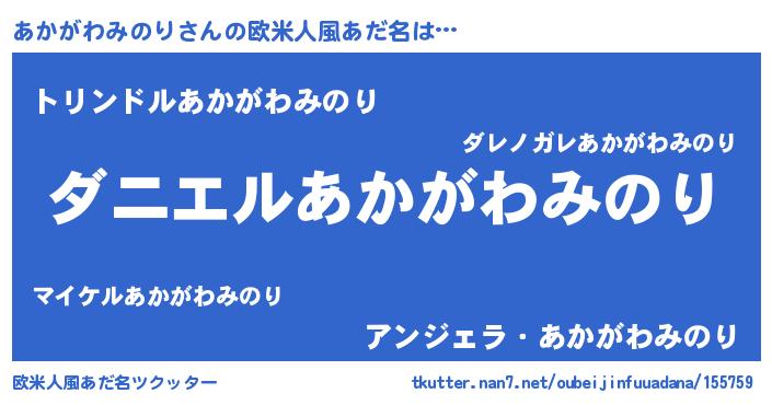 | 女子向けラノベタイトル風あだ名 | 『あかがわみのり恋絵巻』 |