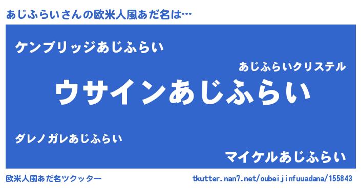 | 女子向けラノベタイトル風あだ名 | 『あじふらい様がみてる』 |