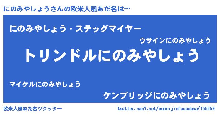 | 男性向けラノベタイトル風あだ名 | 『にのみやしょう~年齢イコール彼女いない歴の魔法使い~』 |