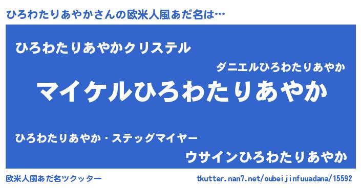 | 女子向けラノベタイトル風あだ名 | 『誰かこのひろわたりあやかを説明してください! ~契約から始まるウェディング~』 |