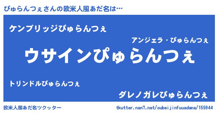 | 女子向けラノベタイトル風あだ名 | 『ぴゅらんつぇの卵を拾いまして』 |