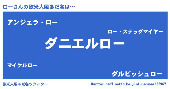 | 男性向けラノベタイトル風あだ名 | 『ノーゲーム・ノーロー』『緋弾のロー』 |