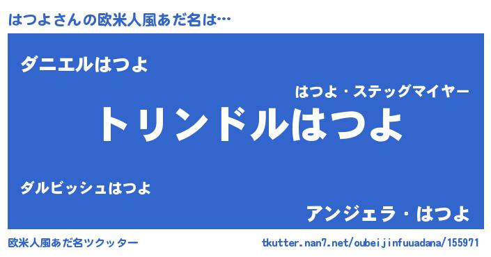 | 男性向けラノベタイトル風あだ名 | 『はつよ~年齢イコール彼女いない歴の魔法使い~』 |