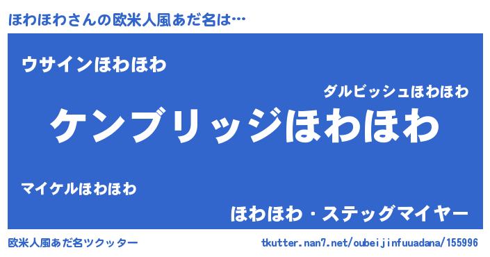 | 男性向けラノベタイトル風あだ名 | 『Re:ほわほわから始める異世界生活』 |