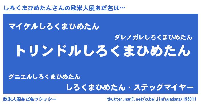 | 男性向けラノベタイトル風あだ名 | 『転生したらしろくまひめたんだった件』 |