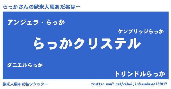 | 女子向けラノベタイトル風あだ名 | 『らっかの雑貨屋さん』『らっか恋絵巻』 |