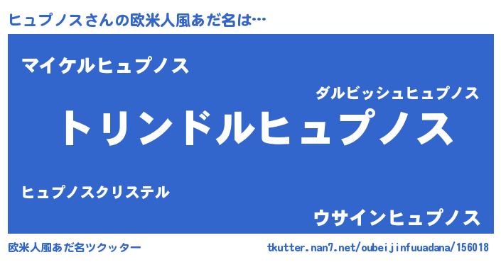 | 男性向けラノベタイトル風あだ名 | 『転生したらヒュプノスだった件』 |