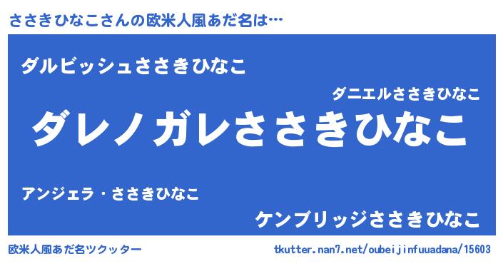 | 男性向けラノベタイトル風あだ名 | 『魔弾の王とささきひなこ』 |
