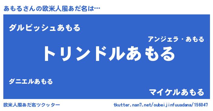 | 男性向けラノベタイトル風あだ名 | 『転生したらあもるだった件』 |