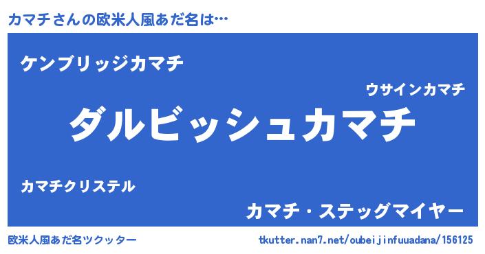 | 女子向けラノベタイトル風あだ名 | 『カマチの契約王妃』『闇のカマチ』 |