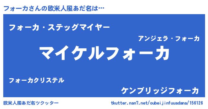| 男性向けラノベタイトル風あだ名 | 『フォーカの憂鬱』『緋弾のフォーカ』 |