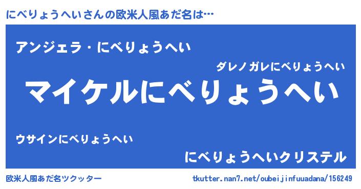| 男性向けラノベタイトル風あだ名 | 『ニベリョウヘイアートオンライン』 |